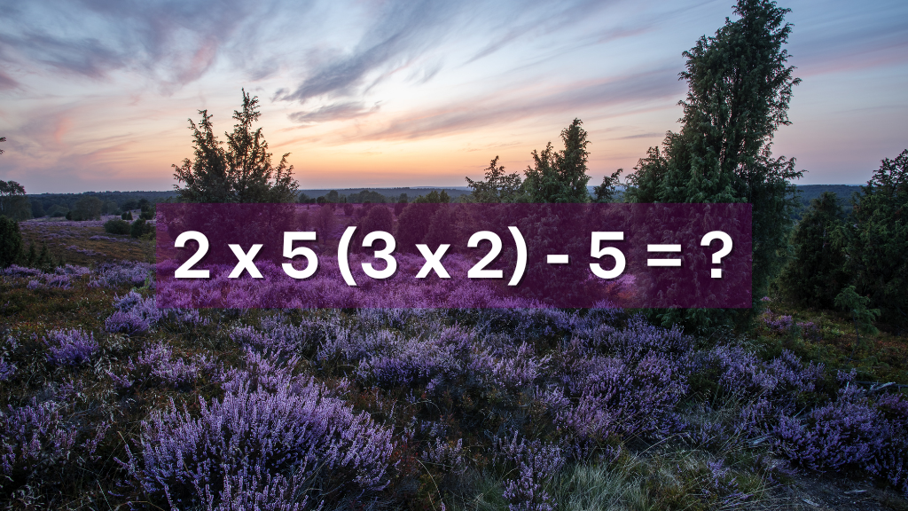Schauen wir uns das Rätsel einmal genauer an: „2 x 5 (3 x 2) – 5 = ?”. Mit welcher Vorgehensweise würdest du es angehen? Du könntest versuchen, von links nach rechts zu rechnen, wie wir es in der Schule gelernt haben. Sei jedoch vorsichtig, denn hier kommen die Regeln der Rechnungsreihenfolge ins Spiel!