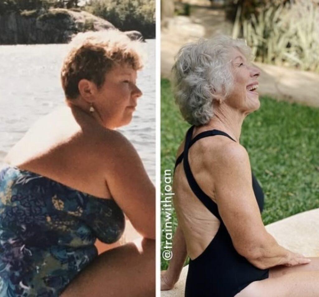 Zur Mitte der 70er Jahre hatte Joan beeindruckende 27 Kilogramm abgenommen und trainierte mit Gewichten, als hätte sie nie etwas anderes getan. Sie konnte problemlos eine Bankdrückübung mit 36 Kilogramm ausführen – eine Leistung, bei der selbst viele jüngere Sportler Schwierigkeiten hätten. Heute, fast 80 Jahre alt, hat sie mehr als zwei Millionen Follower auf Instagram und inspiriert täglich Menschen weltweit mit ihrer Geschichte.