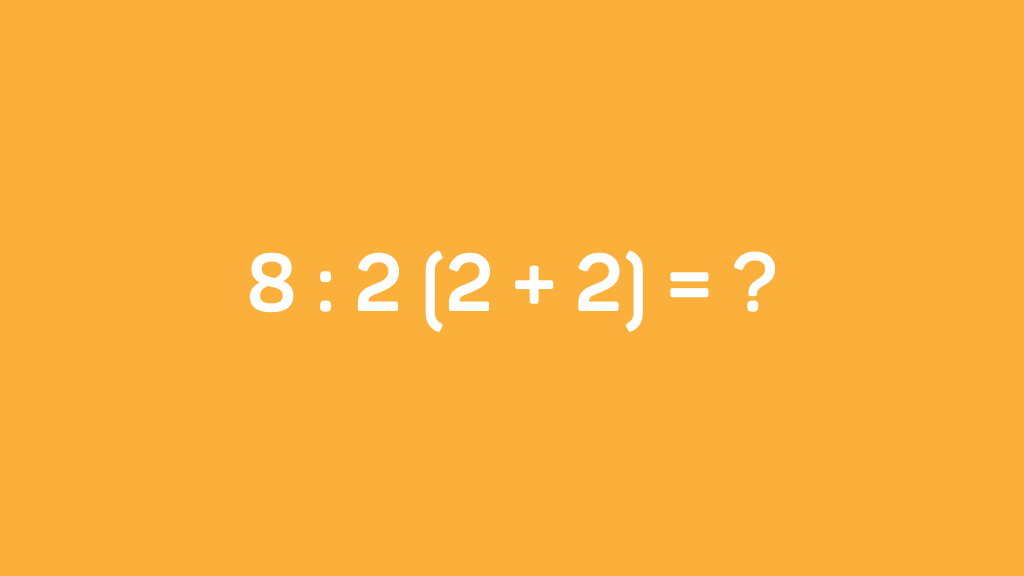 Auf diese Weise können Sie verhindern, dass Ihre Rechnung viral geht – und das nicht auf eine positive Weise. Lassen Sie uns die ursprüngliche Rechnung erneut betrachten: 8 ÷ 2(2+2) führt, wenn wir der Standardreihenfolge folgen, zu dem Ergebnis: 8 ÷ 2 × 4 → 4 × 4 → 16.