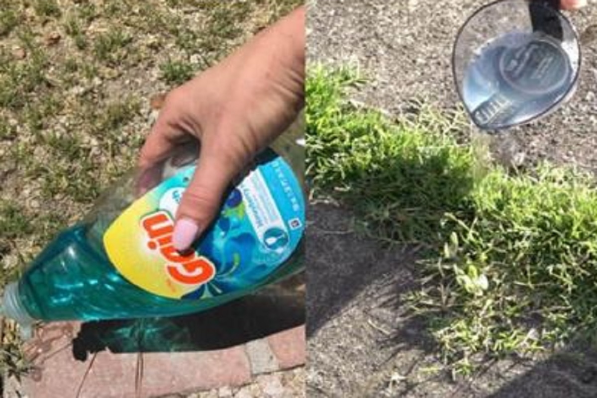 Eine Mischung aus flüssigem Geschirrspülmittel kann ebenfalls gute Dienste leisten. Vermischen Sie fünf Esslöffel Geschirrspülmittel mit vier Tassen Wasser in einer Sprühflasche und schütteln Sie gut. Besprühen Sie das Unkraut großzügig und lassen Sie die Sonne das übrige erledigen.