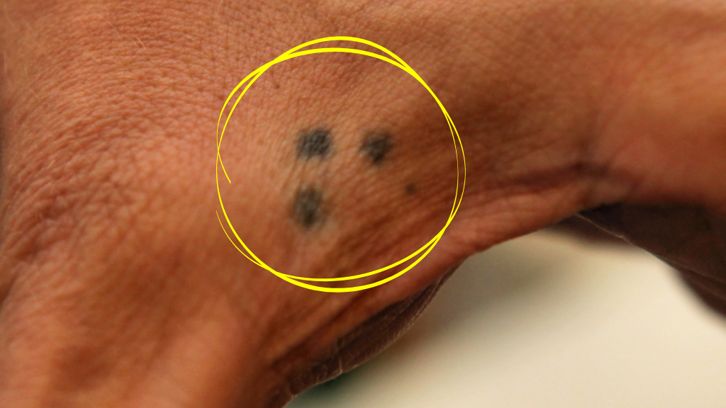 Das Tattoo selbst ist bemerkenswert einfach gestaltet: drei Punkte, oft in einer dreieckigen Anordnung. Diese werden meist klein und in schwarzer Farbe gestochen. Die gängigste Stelle ist zwischen Daumen und Zeigefinger, aber auch an den Knöcheln oder nahe den Augen ist es zu finden. Die Schlichtheit macht es leicht anzubringen, was in Gefängnissen von Vorteil ist. Ästhetisch ist das Design unauffällig, was es manchmal noch gefährlicher macht, da es leicht unter den Radar fliegen kann.